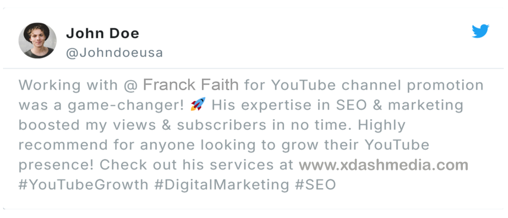 I am Franck Faith. As a professional Digital Marketer and Social Media Expert with more than 5 years of experience My services are: -Social media marketing -YouTube promotion -YouTube SEO -Instagram promotion -Web traffic -lead generation b2b -Site optimisation for SEO I will try my best and give you 24hrs service with satisfying work.